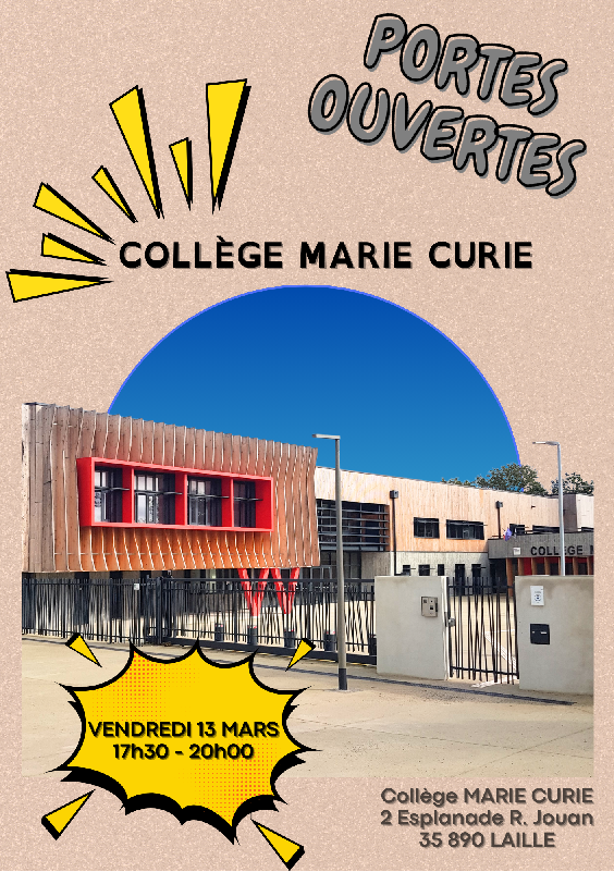 Soirée Portes ouvertes au collège de 17h30 à 20h00 vendredi 13 Mars 2026